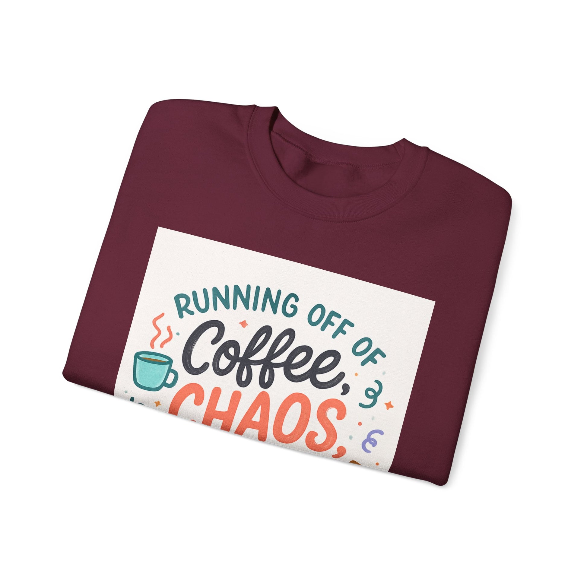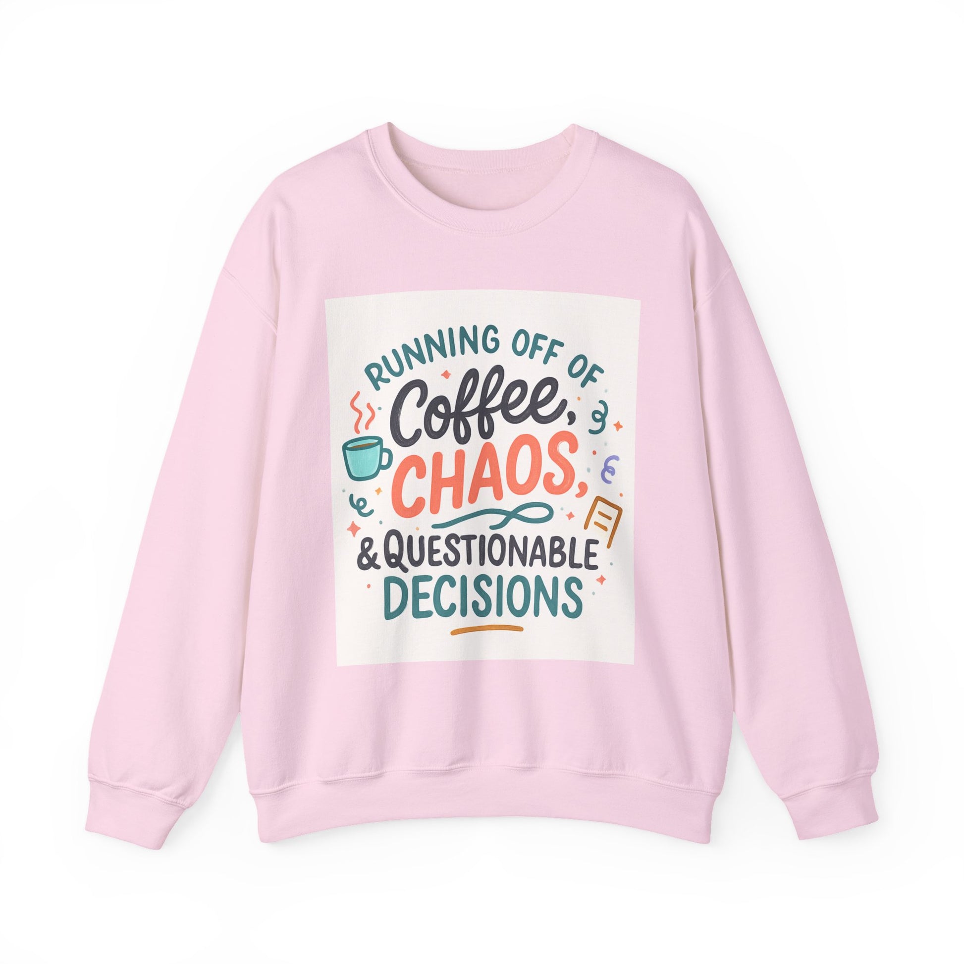Crewneck Sweatshirt — "Running Off Of Coffee, Chaos & Questionable Decisions" Graphic