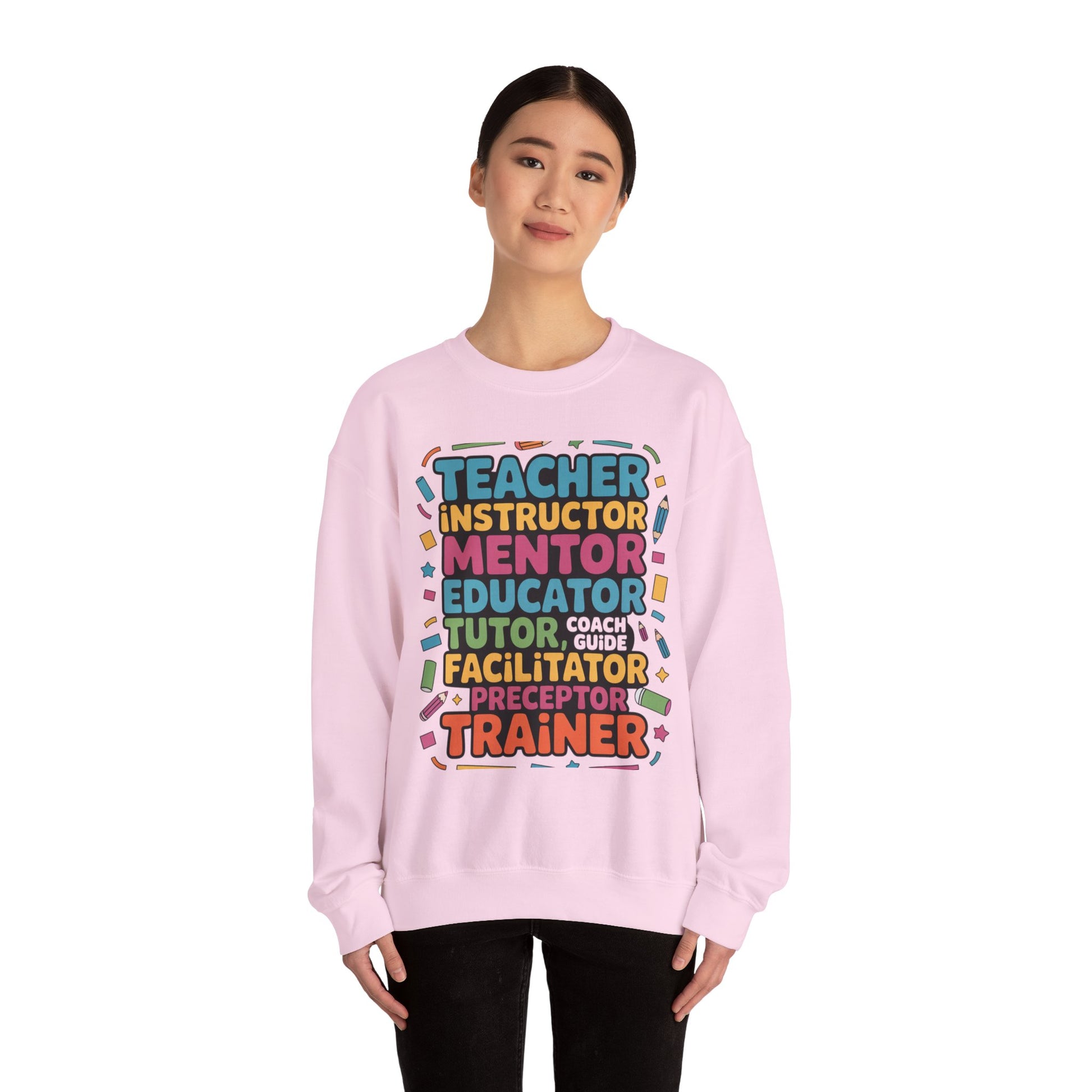 An inspiring teacher sweatshirt with motivating words, perfect for educators looking to showcase positivity and inspiration. This comfortable and durable sweatshirt is ideal for casual wear or layering during cooler days. Relevant for Teacher Appreciation Week, back-to-school season, and holiday gift-giving for teachers.