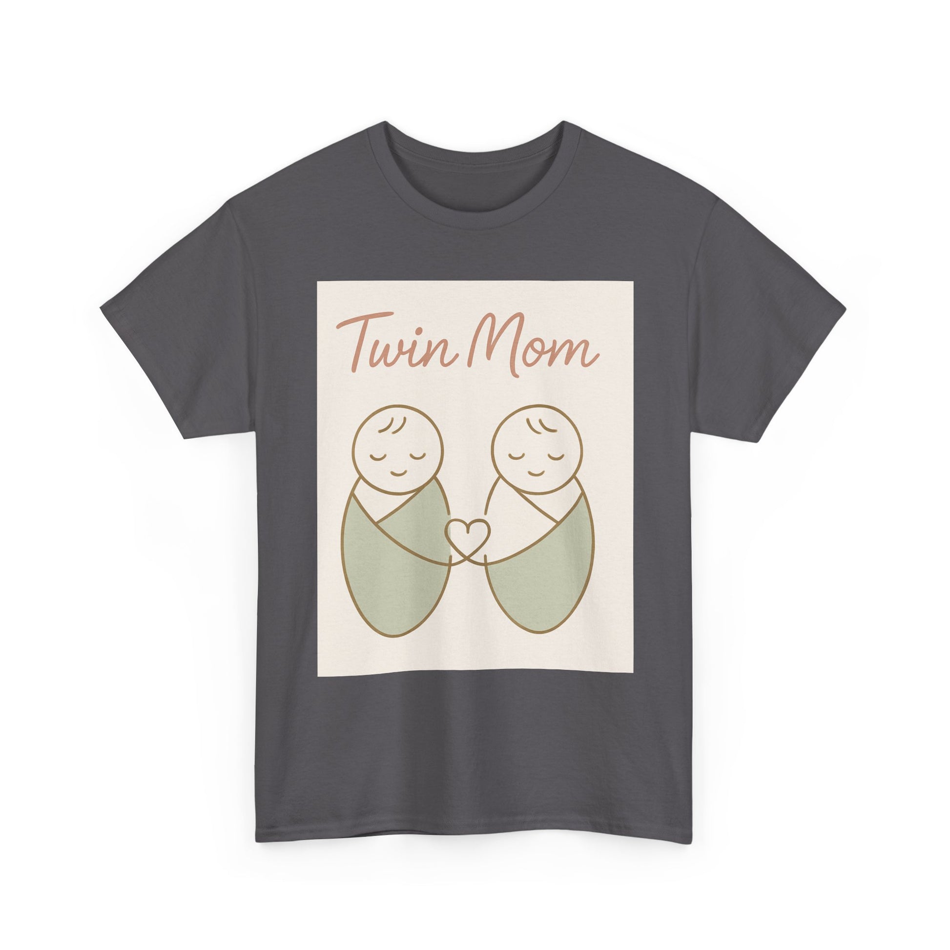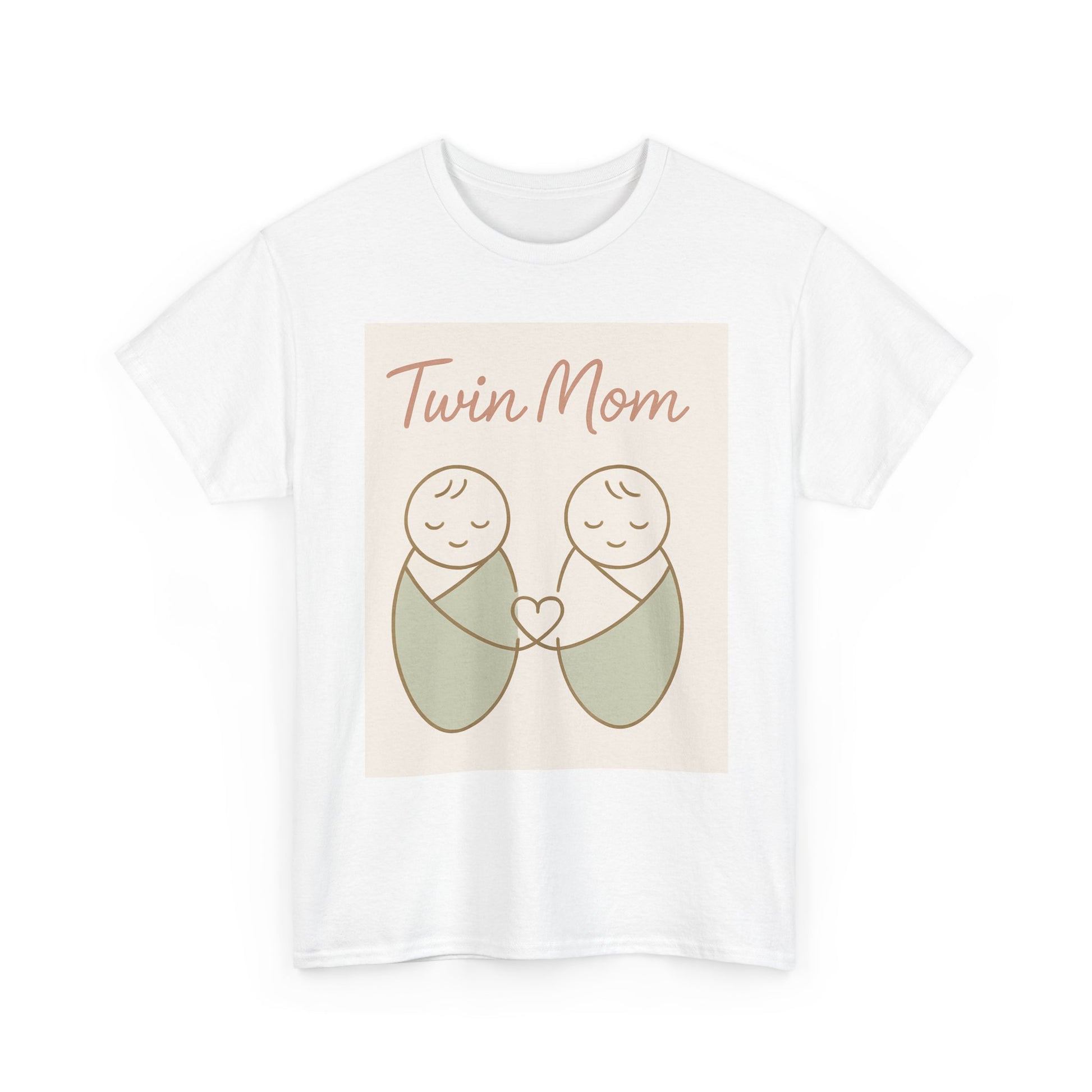 Twin Mom Heavy Cotton Tee - Cute Matching Design for Mothers